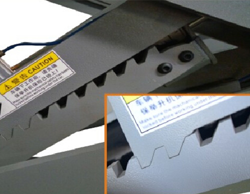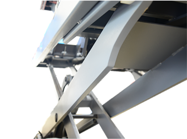 ◆ 8 cylinders, double hydraulic balance system(main lift)and mechanical safety with automatic unlock are equipped